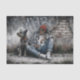 Junge und Hund Street Art Urban Graffiti Dekupierschnitt Papier bietet ein kühnes, malerisches Porträt eines jungen Mannes, der neben seinem treuen Hund an einer ramponierten Ziegelwand sitzt, die mit urbanen Graffiti markiert ist. Erdtöne, abgenutzte Weißtöne und auffallende Akzente schaffen eine zeitgenössische Street-Art-Stimmung mit geschichteter Textur und Attitüde. Ideal für moderne Dekupierschnitt-Möbel, Statement-Trays, Mixed-Media-Kunst, Tagebücher oder Projekte, die Grit, Kameradschaft und ausdrucksstarken urbanen Stil kombinieren.