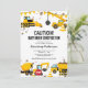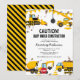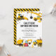 Baubezogene Babyduscheinladungen mit einem schlichten, weißen Hintergrund, niedliche Abbildungen der Bundung, Stoppschilder, ein Müllwagen, ein Bagger, ein Zementwagen, ein Kranich, Schmutzkrane, Spritzer und ein modernes, leicht zu personalisierendes "Baby im Bau"-Template.