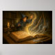 Junge Zauberer mit Illustration der Buchfantasie Poster