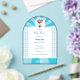Fröhliche Babydusche Akryllische Einladung in Weiß und Blau. Mit einem fliegenden Baby überzogen, das in Ballons getragen wurde. Ein schöner Sake des schönsten Ereignisses