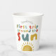 Dieses niedliche und moderne Jungs 1. Geburtstag Papier Becher Design bietet eine Sonnenstudio mit dem Text "First trip around the sun" in bunten Typografie und kann mit Ihrem Jungennamen personalisiert werden. Das perfekte coole und helle Design für den ersten Geburtstag Ihres Kleinen!