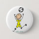 Ein Jungen-Strichmännchen-Fußballspieler mit Fußbalball auf einem kundengerechten Knopf, ein groß für jedermann das Lieben Fußball und Strichmännchen!