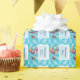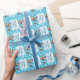 Wunderschöne blaue und weiße Babydusche Wrapping Paper mit einem Ballon, einem süßen Sake, um einen kleinen Jungen willkommen zu heißen.