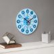 Jungen lernen, die Zeit der matten blauen Wanduhr