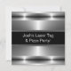 Boy's High-Tech Silber-Chrom und schwarz beliebig Zahl Laser-Tag und Pizza Geburtstag Party Einladung Vorlage. Passen Sie Ihre Party an.