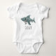 Dieses niedliche und skurrile Baby Bodysuit Design verfügt über einen Cartoon mit blauem Seehai und kann mit Ihrem Jungennamen personalisiert sein. Das perfekte Geschenk zum Thema Ozean für jeden Hai-Liebhaber, ein tolles Geschenk für Ihre nächste Babydusche.