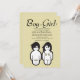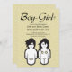Eine schicke, moderne Einladung, die ein männliches und weibliches Kind mit betonten Organen kennzeichnet.