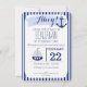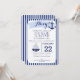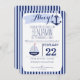 Kennzeichnet 1. Geburtstags-Party Einladung dieses Jungen ein Segelboot und -anker auf einem weißen Rahmen und einem Marineblau- und hellblauengestreiften Hintergrund. Es ist bereit, personalisiert zu sein und ist passend als 1. Geburtstagseinladung eines Jungen und für ein 1. Geburtstags-Party des Seethemas besonders passend. Die Einladung kann für eine andere Altersklasse benutzt werden.
