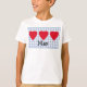 Dieses hübsche Shirt mit einem karierten, blauen und weißen Hintergrund und einem Trio roter Herzen. Personalisieren Sie Ihre persönlichen Daten mit dem Namen Ihres Kindes.
