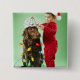 Junger Junge, der Weihnachtslichter um einen Hund Button