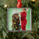 Junger Junge, der Weihnachtslichter um einen Hund Silbernes Ornament