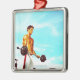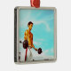 Junger Mann, der mit Barbells trainiert Silbernes Ornament