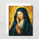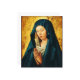 Der schlichte und dunkle Hintergrund kontrastiert mit dem strahlenden Kopf der Jungfrau und der weißen Kopfbedeckung, und ihre Hände sind sanft zusammengeschlossen
