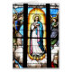 Beflecktes Glasfenster, welches die Jungfrau Mary umgeben von den Engeln und von den Heiligen, in der Collegekirche des Heiligen Sylvain, Levroux, Frankreich darstellt.