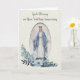 Dies ist ein wunderschönes Bild der Jungfrau Mary, Our Lady of Grace mit einem Spitzen Hintergrund und blauen Blumen darunter. Alle Texte und Schriftart können geändert werden.