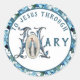 Dies ist ein wunderschönes traditionelles katholisches Bild eines marian "M" der gesegneten Jungfrau Mary mit dem religiösen Zitat "TO JESUS DURCH MARIA". Ein blauer Blumenrand betont den Aufkleber.