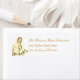 Design zeigt das Bild von Unsere Frau von Fatima auf verlassen, mit der Ähnlichkeit von zwei Rosenbuden neben dem Bild. Die Rücksendeadresse wird in einem goldfarbenen Kastanienfarbenen Nuptial-Schriftart gezeigt. Sehr elegant. Alle Bilder in sepia.