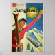 Jungfrau Schweiz Reiseplakat - Schweizer Tourismuspromo Poster. Die Jungfrau, auf 4.158 m gelegen, ist einer der Hauptgipfel der Berner Alpen, zwischen dem nördlichen Kanton Bern und dem südlichen Wallis, auf halbem Weg zwischen Interlaken und Fiesch.