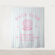 Der Junggeselinnen-Abschied Coastal Rosa Backdrop Bachclub, personalisierte Retro-Luxus-Junggeselinnen-Abschied-Tapete in hellrosa mit Muschel und Perle, und hellblau nautische Streifen, ist perfekt als Junggeselinnen-Abschied Foto Hintergrund. Feiern Sie Ihr Brautparty stilvoll mit dem fett rosa Thema des Junggeselinnen-Abschieds an der Küste, das perfekte Thema für die nostalgische Vintage 70er Braut und ihre Brautjungfrauen.
