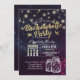 Brautparty / Hochzeitsfeier Einladung Card Vorlagen - Elegante Junggeselinnen-Abschied Imitate Gold Foil Lettering Script und Vintag Mason Jar String Lights on Lila Sparkle Bokeh Lights Hintergrund. Ein perfektes Design für Ihren großen Tag. Alle Textstile, Farben, Größen können an Ihre Bedürfnisse angepasst werden!