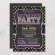 Junggeselinnen-Abschied laden mit Retro-Kalkboard Blick auf schwarz, dunkelgrau und gelb Sternenmuster mit lila Rack-Design-Elemente und Kreide-Look Schriftart.