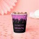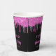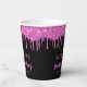 Girly und lustige personalisierte Papiertassen für Ihren Junggeselinnen-Abschied mit funkelnd, rosa Imitat Glitzer tropfen einen schwarzen Hintergrund und "Junggeselinnen-Abschied" in einem heißen rosa Skript. Sie können mit Ihrem Namen und Party-Datum personalisieren.