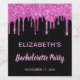 Girly und lustige personalisierte Weinmarke für Ihren Junggeselinnen-Abschied mit funkelnd, rosa Imitat Glitzer tropfen auf schwarzem Hintergrund und "Junggeselinnen-Abschied" in einem heißen rosa Skript. Sie können sich auch mit Ihrem Namen und Party-Datum personalisieren.