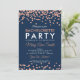 Elegantes Junggeselinnen-Abschied Design mit Rose Gold Imitate Glitzer Confetti Navy Blue Design und benutzerdefinierten Text.