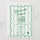 Ein farbenfrohes, handgezeichnetes Design mit Spielkarten und Würfeln im Casino-Thema. Ein schönes Design, perfekt für Junggesellinnen-Abschied-Party. Diese Einladung zum Junggesellinnen-Abschied enthält auf der Rückseite einen Reiseplan für das Wochenende. Eine retro-moderne, vintage grün-weiß gestreifte Einladung zum Junggesellinnen-Abschied.