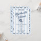 Eine farbenfrohe, handgezeichnete Pizza-Italienisches-Essen-Themendesign. Ein schönes Design, perfekt für Junggesellinnen-Abschiedswocheende-Partys. Diese Junggesellinnen-Abschiedseinladung enthält auf der Rückseite einen Wochenend-Routenplan. Eine retro-moderne Vintage-Junggesellinnen-Abschiedseinladung mit blauen und weißen Streifen.