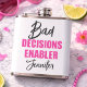 Verleihen Sie Ihrer Hen Party mit diesem personalisierten Flakon "Bad Decisions Enabler" einen mutigen und spielerischen Touch. Perfekt für die Trauzeugin oder die ultimative Komplizin, verfügt dieser elegante und stilvolle Flakon über eine auffällige Typografie mit einer lustigen Mischung aus Schreib- und Fettschrift. Das individuelle Namensdetail macht ihn zu einem unvergesslichen Erinnerungsstück für die Feier und einem großartigen Geschenk für die Mitglieder der Brautparty. Kompakt und leicht zu tragen, ist er ideal für Nächte außer Haus, Partyfotos und unvergessliche Momente mit der Brautclique.