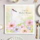 Diese handbemalte Wasserfarben-Serviette zeigt einen eleganten Kranich, der friedlich zwischen sanften rosa, violetten und pfirsichfarbenen Anemonen steht und so einen romantischen, naturinspirierten Tischakzent schafft, der perfekt für einen Brautjunggesellinnenabschied oder eine Hochzeitsfeier ist. Der Kranich symbolisiert Hingabe und Harmonie, während die zarten Blumen ein Gefühl von Schönheit, Erneuerung und Neuanfang vermitteln - ein ideales Motiv, um die zukünftige Braut zu ehren.