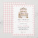 Sie ist frisch vom Markt! Eine süße Blumenkarre Junggesellinnenabschieds-Einladung mit rosa Gingham-Hintergrund.