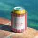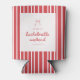 Junggesellinnenabschied mit gestreiftem rotem und weißem Band Can Cooler. Persönlich anpassen mit dem Namen der Braut und dem Ort des Junggesellinnenabschieds unten.