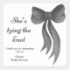 Thema Junggesellinnenabschied mit schwarzer Schleife - Sie knüpft den Knoten, Quadratischer Aufkleber für den Junggesellinnenabschied.