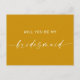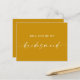 Frag deinen besten Freunden, mit dieser schicken "Will You Be My Bridesmaid"-Karte, die einen fett formatierten Senfgelb (goldfarbener Ocker) und eine elegante Schrift-Typografie enthält, zur Seite zu stehen. Diese Designerkarte ist ein modernes Mittel, um die Frage zu Pop. Sie eignet sich perfekt für rustikale, boho- oder Hochzeit im Herbst-Themen. Die warme Farbpalette (auch bekannt als Marigold) verbindet sich wunderschön mit erdigen Tönen, Salbei, Blüte und Terrakotta-Akzenten.