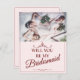 Junggesellinnenabschiede? Drei verdeckte Jungfernhäuser mit Sträuchern in weichen rosa Kleider vor einem Fenster. Der Backtext kann in der Vorlage angepasst werden. Foto von Valerie Elash