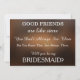 Diese 5" x 7" schöne Werden Sie meine Brautjungfrau? Einladungskarte. Das ist am besten für die Braut. Wenn Sie jemanden gefragt haben, um Ihre Brautjungfrau für Ihre zukünftige Hochzeit zu sein, dann wählen Sie doch diese Bräunungskarten. Diese individuelle Einladungskarte lässt Ihren Freund, Schwesterfreund, Cousin, Neffe, Tochter oder den anderen, den Sie sich aussuchen, sich so besonders fühlen. Diese Einladung ist leicht personalisiert, indem Sie auf die Schaltfläche Anpassen unter dem Bild klicken, wo Sie den Text, den Schriftart und die Größe ändern können. Mit diesen klassischen Einladungen können Sie Ihre besten Freunde stilvoll einladen. Es eignet sich für Blume, Trauzeugin oder für Ehrenmatron. Schicke ihnen diese Karte.