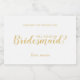 "Wirst du meine Bridesmaid sein?" Gold Moderne Schriftzeichen Labels mit der Formulierung "Will You Be My Bridesmaid?" im modernen, goldfarbenen Script-Schriftart-Stil mit Details in goldmodernen Sans Serif Schriftart auf weißem Hintergrund. Bitte beachten Sie: Die Details der Folie werden im Kunstwerk simuliert. Bei der Herstellung dieses Produktes wird keine Folie verwendet.