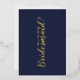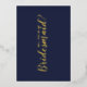 "Wirst du meine Bridesmaid sein?" Moderne Script Navy und Gold Foil Card mit dem Titel "Will You Be My Bridesmaid?" in echter Goldfolie moderner Script Schriftart Stil auf der Vorderseite mit Imitaten Goldfolie personalisierten Text auf der Rückseite der Karte.