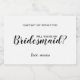 "Wirst du meine Bridesmaid sein?" Moderne Schriftzeichen-Schriftzeichen mit der Formulierung "Will You Be My Bridesmaid?" im modernen, schwarz-Script-Schriftart-Stil mit Details in schwarz-modernen Sans Serif Schriftart auf weißem Hintergrund.