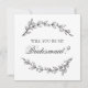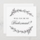 Schwarz-Weiß-Karte mit botanischen Elementen "Werden Sie meine Brautjungfrau?".