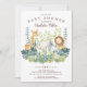 Adorable Dschungeltiere Einladung mit einem Elefanten, Löwen, Rhino & Giraffe umgeben von einem Dschungel-Blätter für eine geschlechtsneutrale Babydusche. Dreh unsere Einladung zu einem koordinierenden Rücken für eine besondere Touch.