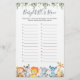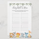 Die Rennspielkarte der Jungle-Tiere zum Thema Babydusche bietet eine Aquarellbilder für Dschungeltiere und eine Aquarellgarage für Eukalyptuspflanzen sowie einen handgeschriebenen Schriftart.