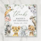 Add a personal touch to your birthday celebration with these stylish and memorable party items! Design features jungle animals (giraffe, monkey, zebra, lion, elephant, cheetah, meerkat, rhino) and eucalyptus leaves on white background.
