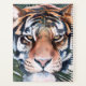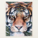 Jungle Cat I von Jennifer Paxton Parker. Dieses Kunstwerk ist ein nahes Aufsetzen eines stoischen Tigers in einem sanften Kunststil. | 164728Z