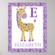 JUNGLE GIRAFFE LILA GIRL INDIVIDUELLE NAME DRUCKEN POSTER