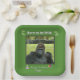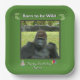 A bold deep‑green background sets the stage for this fun wildlife‑themed birthday design. Two leafy accents frame the top corners, while Born to Be Wild appears in crisp white League Spartan lettering with a soft black drop shadow for clean readability. The center features a charcoal‑gray framed photo of a gorilla taken at a Florida zoo, adding an authentic touch of nature and personality.