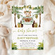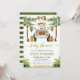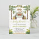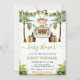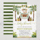 Eleganter Watercolor Dschungel wildes Tier Affen Design mit grünem tropischem Blattwerk mit goldenem Konfetti und Streifen Hintergrund