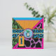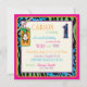 Safari-Drucke, Giraffe, Zebra und Cheetah und ein Polka-Punktmuster, mit Affen, die an einem Reben und 3D-Look-Tags hängen, Bogen, trimmt die Einladungskarte zum ersten Geburtstag.